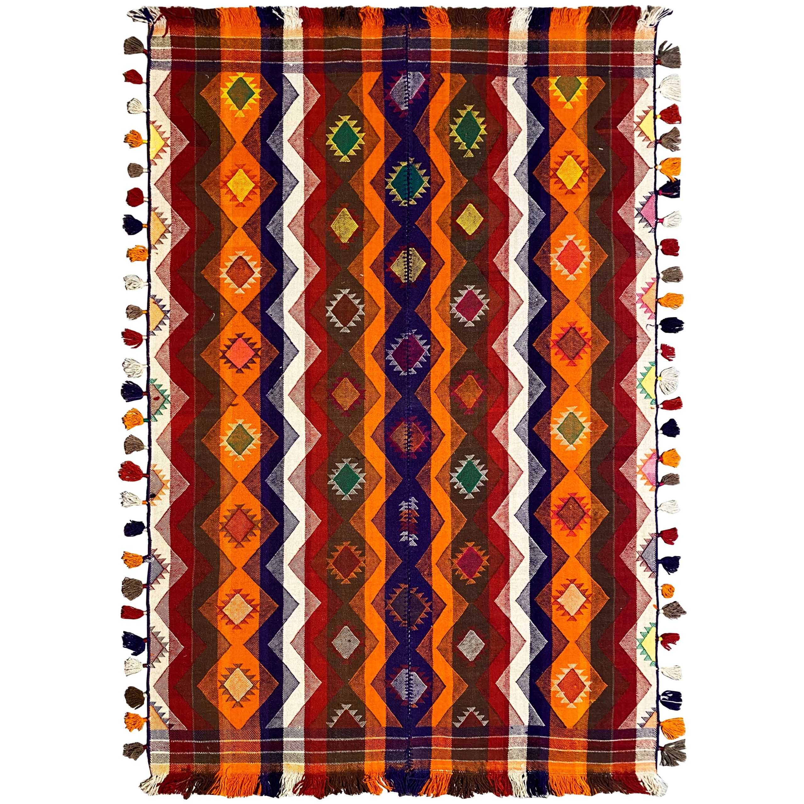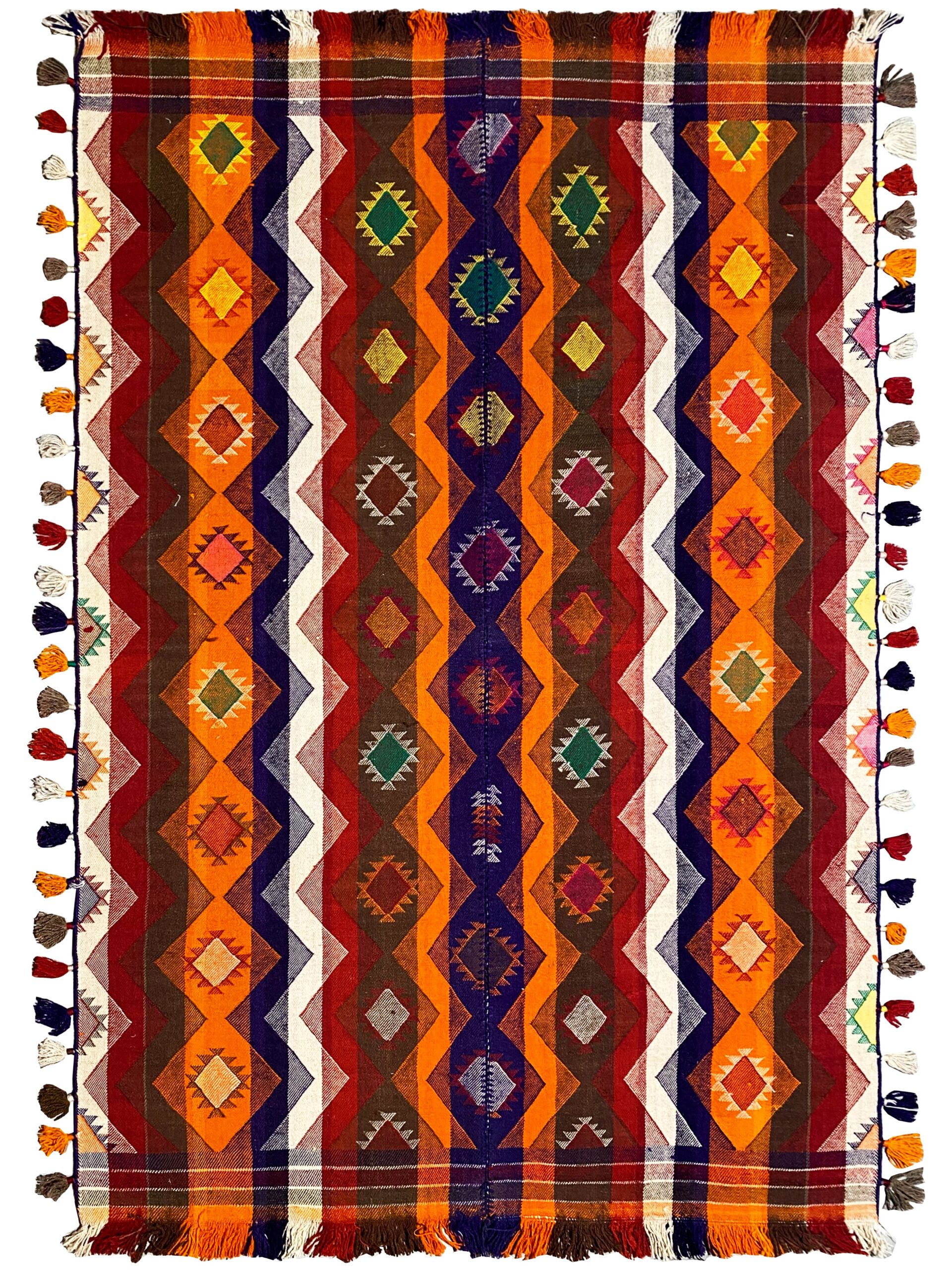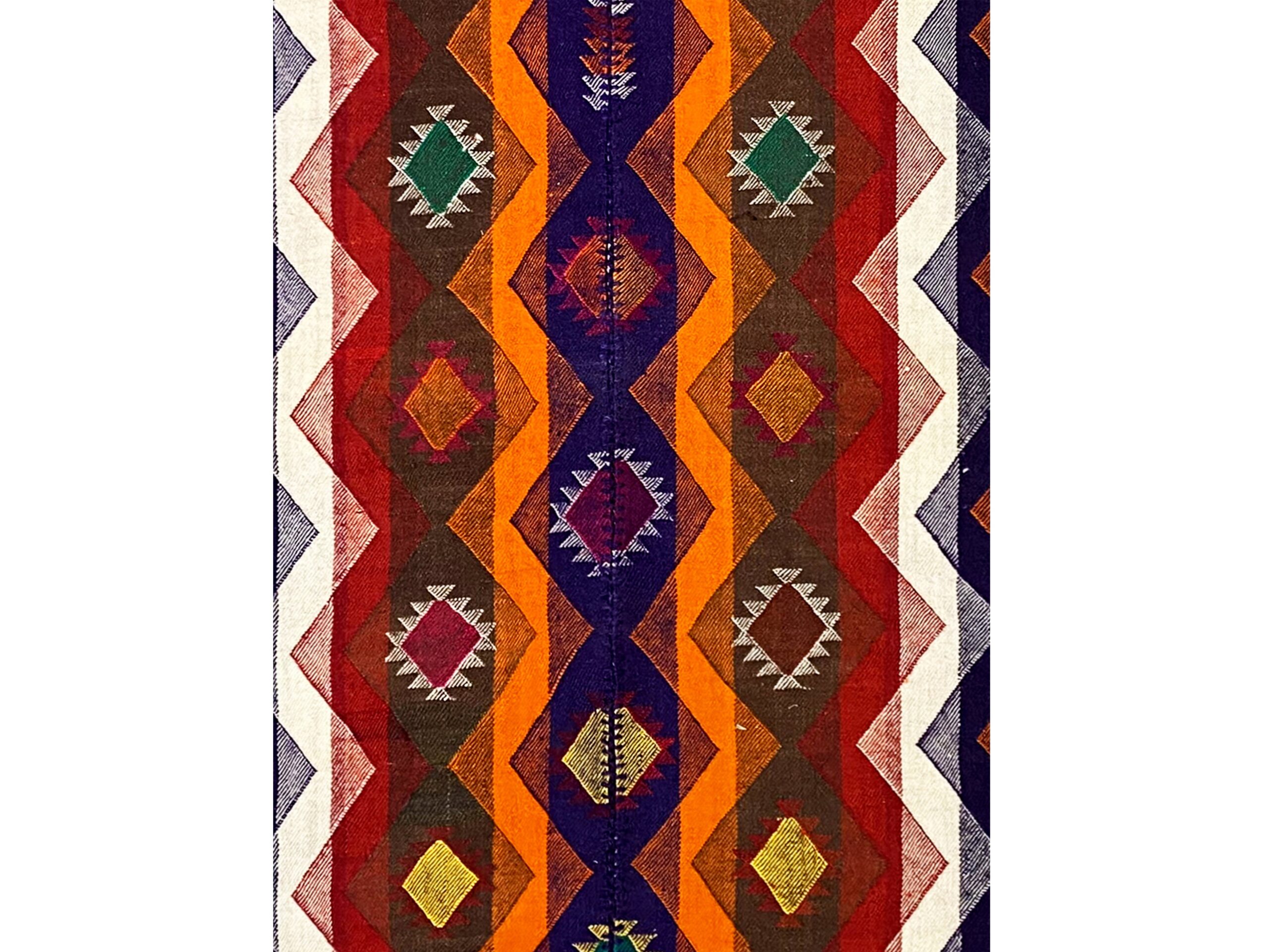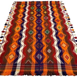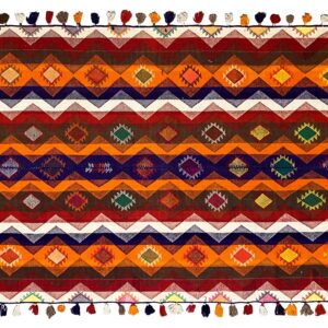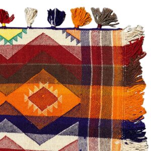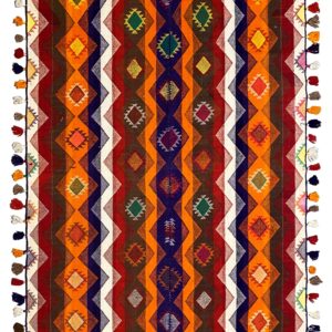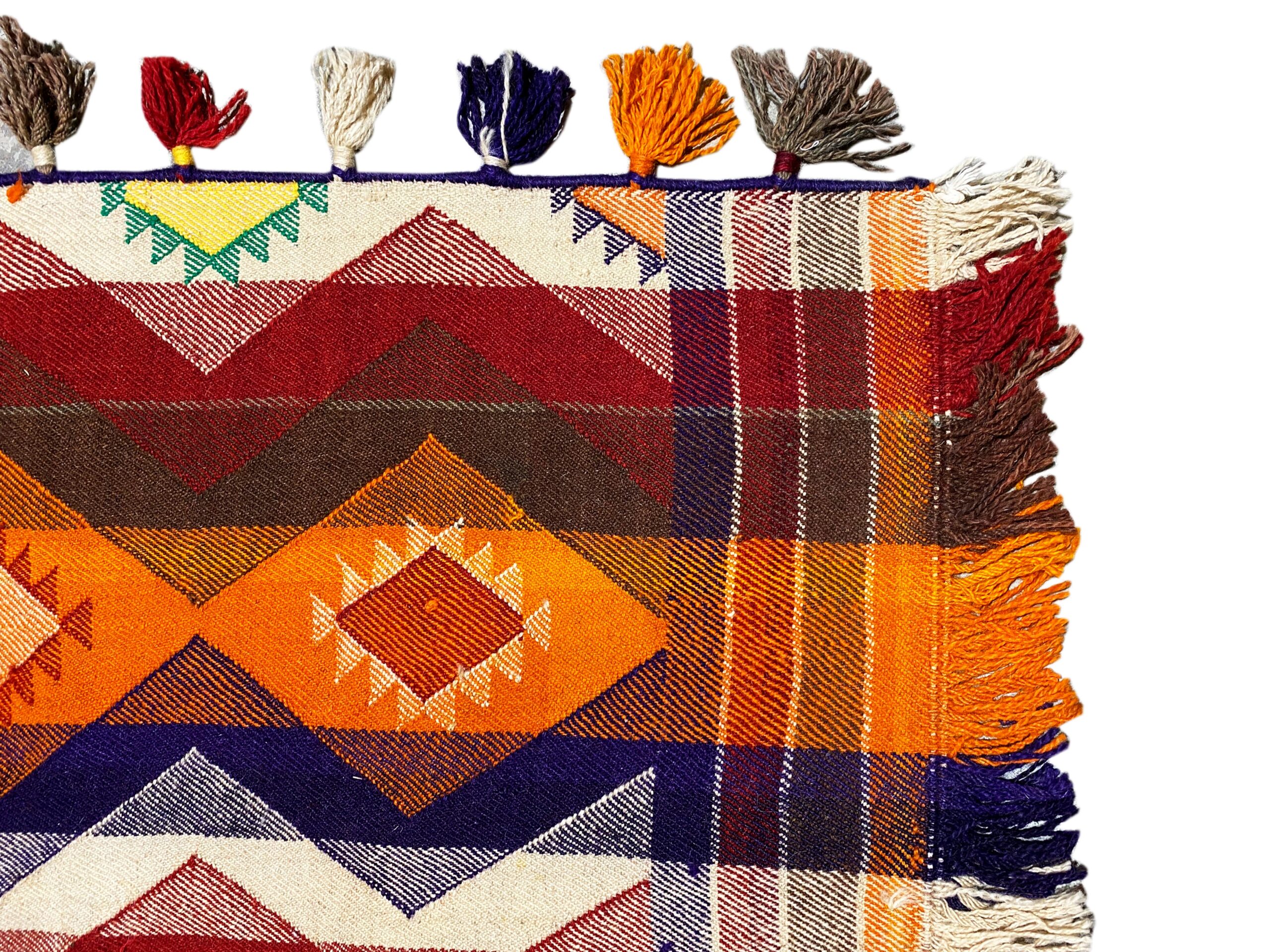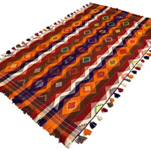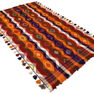 Traditionell handgewebter Jajim-Teppich mit authentischem Charakter und warmer Ausstrahlung. Hochwertige Materialien und traditionelle Handwerkskunst sorgen für Langlebigkeit und Stil.