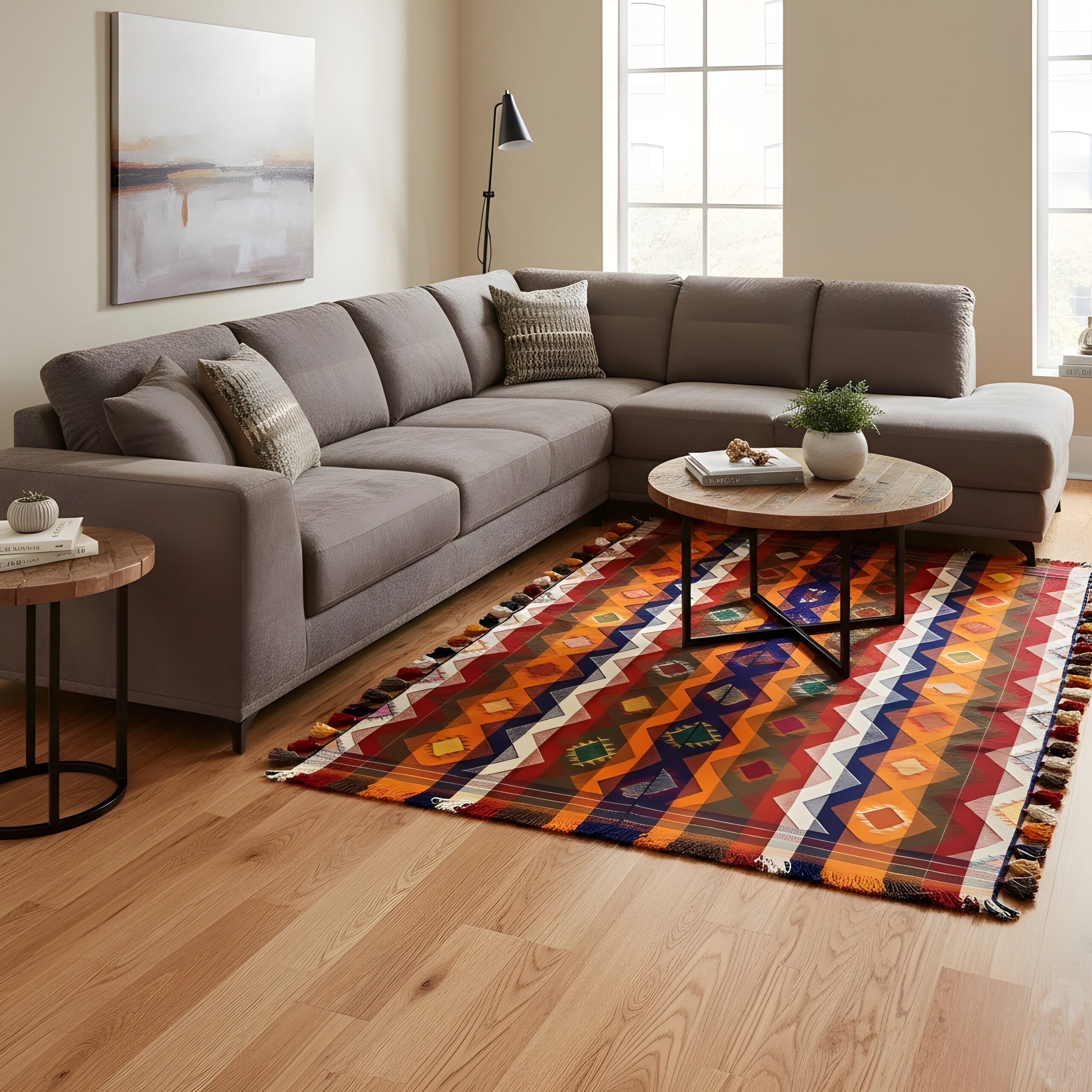 Traditionell handgewebter Jajim-Teppich mit authentischem Charakter und warmer Ausstrahlung.