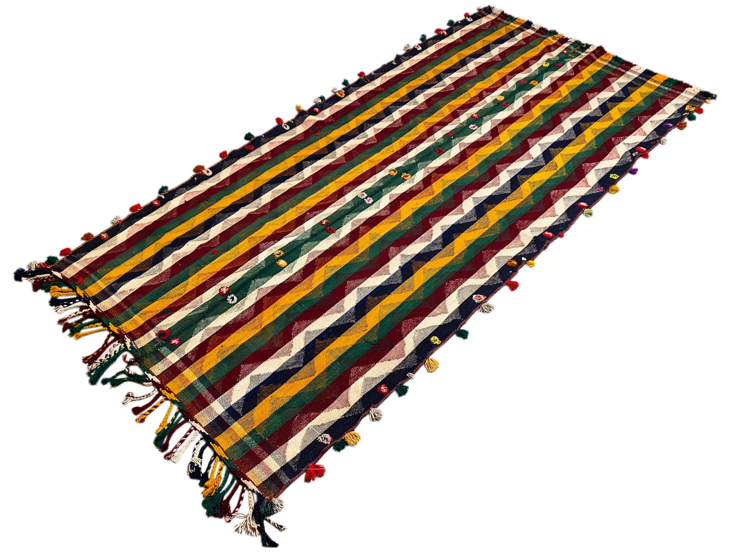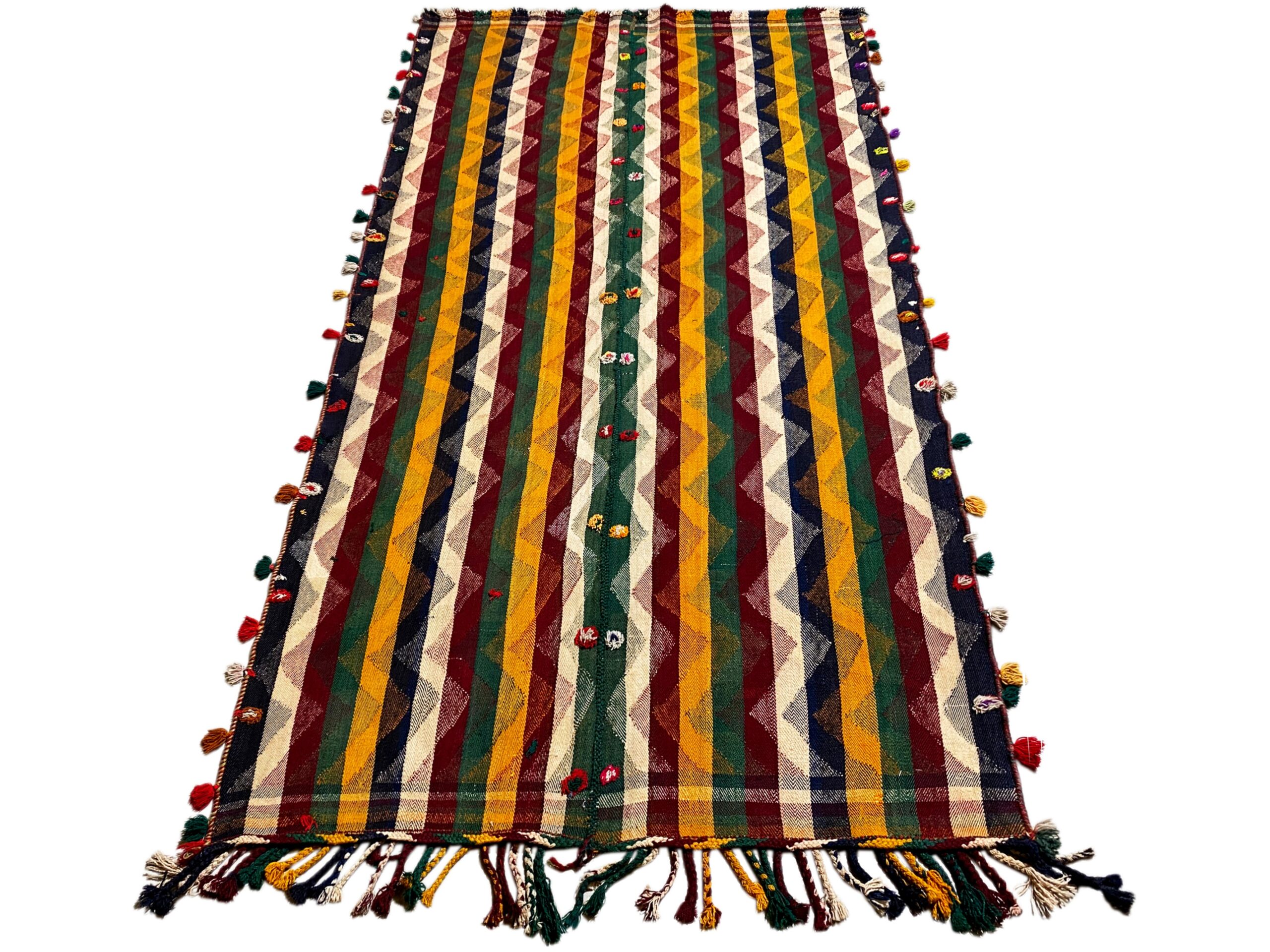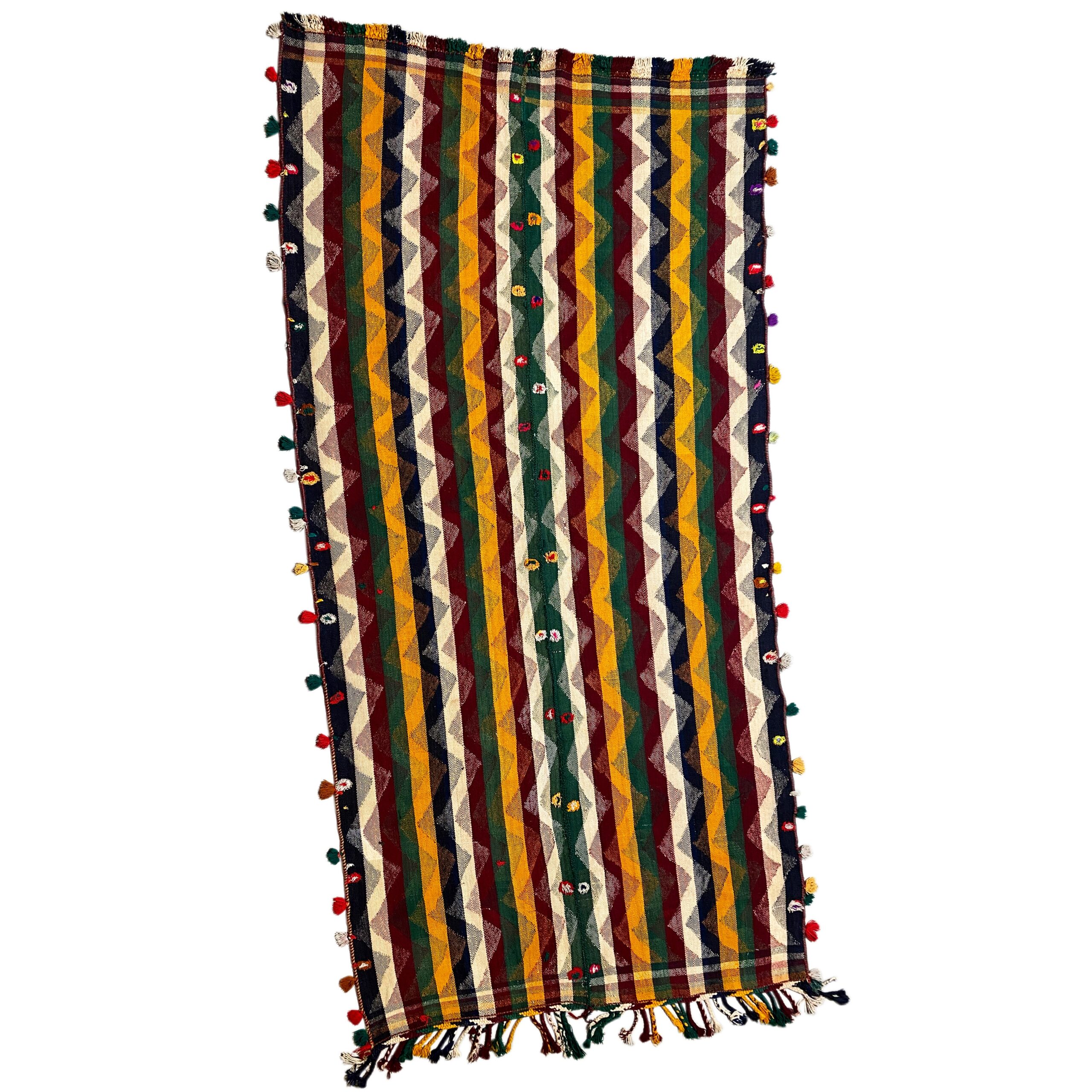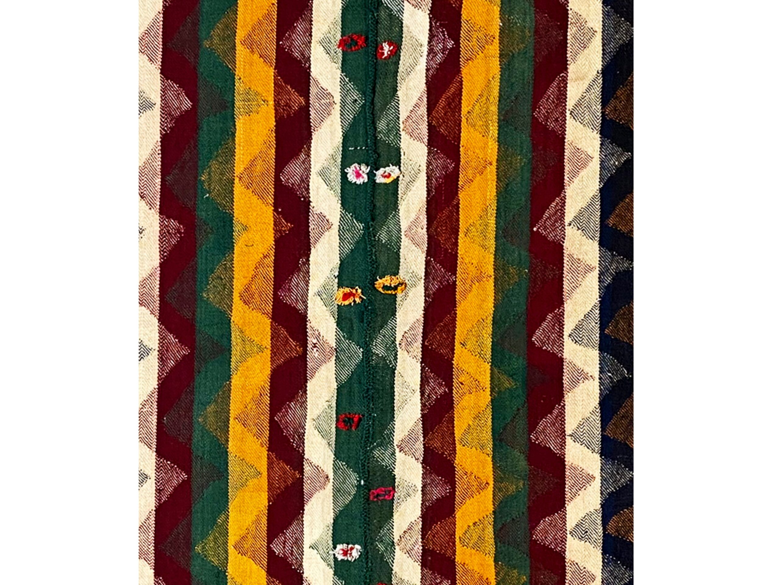 Traditionell handgewebter Jajim-Teppich mit authentischem Charakter und warmer Ausstrahlung. Hochwertige Materialien und traditionelle Handwerkskunst sorgen für Langlebigkeit und Stil.